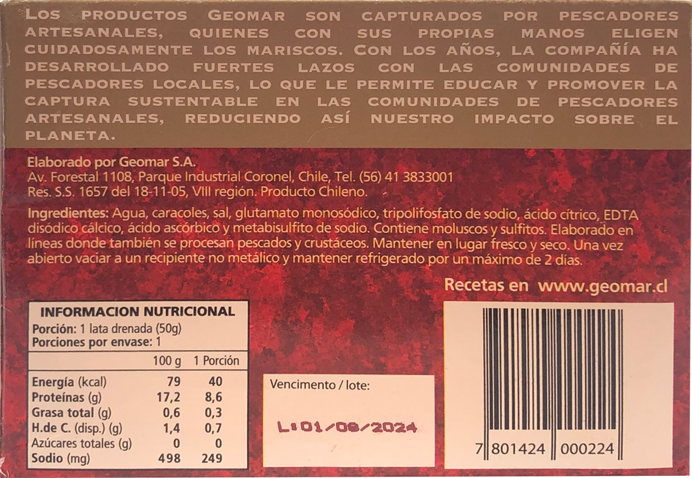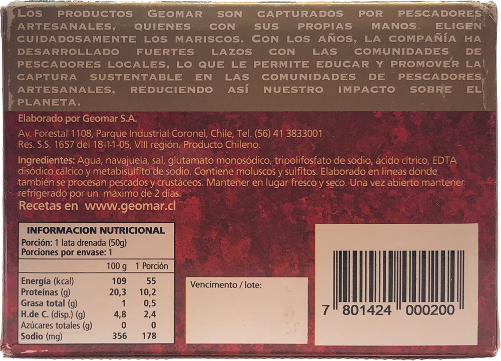 チリ国内では 、20年以上にわたって、付加価値の高い美食家向け海産物缶詰生産における第一人者です。